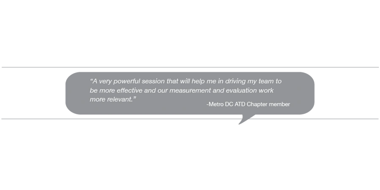Bring this informative, highly engaging session in-house to your L&D team. Provide them with practical tips and guidelines on how to make sense out of both quantitative and qualitative data collected using Level 1, 2, 3, and 4 evaluations. Remember, collecting evaluation data is only half the job, making sense out of it is the other half!